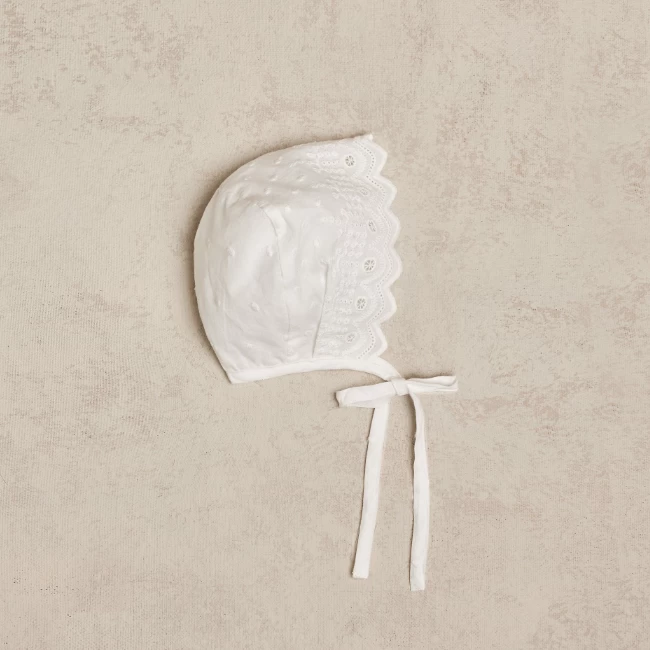 Complete the look with this stunning bonnet, featuring a beautiful soft floral design, ties at the neck for a great fit.
