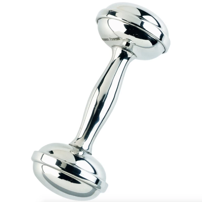 The pitter-patter of little feet brings the jingle jingle of little rattles. This fun and adorable pewter dumbbell rattle is everything you want in a baby gift and more since it’s handmade right here in the U.S.A.