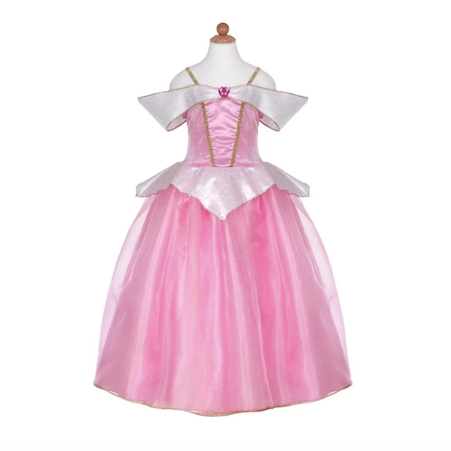 Be the talk of the tea party with this deluxe Sleeping Cutie-inspired gown. Made with the highest quality fabrics, trims, and accents. This gown features exquisite detailing, beautiful patterns, and layers of rich textiles. Only the premium quality satins and organzas to produce this GreatPretender® masterpiece.