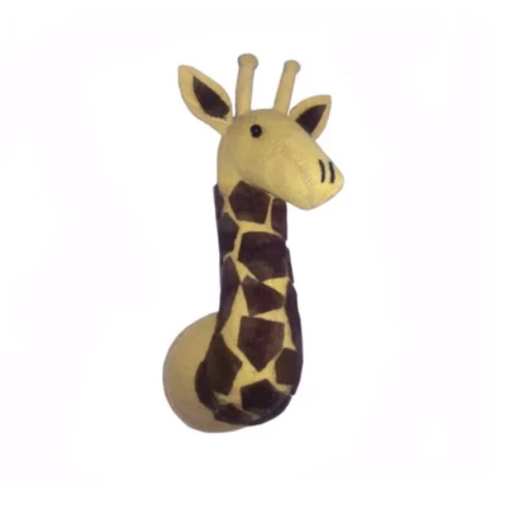 Fiona Walker Designs kids’ mini giraffe head wall décor.Built in hook/s, lightweight, easy to hang, sits flush to the wall. 6″W x 5″D x 10″T. Real wool felt. Spot clean. Imported. Weighs approx. 2 lbs.
