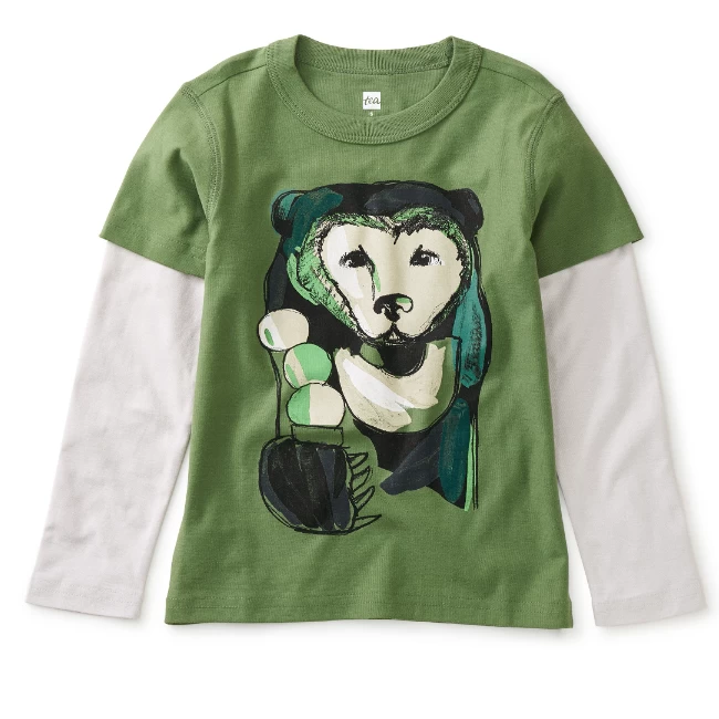 The Moon Bear, or “Nihon Tsukinowa-guma” in Japanese, is a black bear that’s found in many places in Asia. We love the artistic rendering of this one. Layered look tee. Crafted from 100% soft cotton jersey.